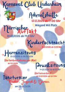Am 14.02.2026 findet ab 18:33 Uhr die Prunksitzung des KCU statt. Der Kartenvorverkauf findet am 10.01.2026 ab 10:11 Uhr statt. Damit die Käufer nicht zu lange im Kalten stehen müssen, wird...